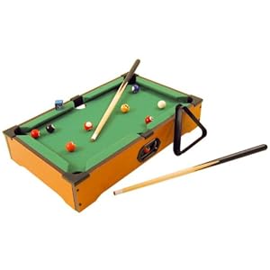 Ce billard taille réduite livré à domicile pour vous faire plaisir, pour un cadeau, pour tous les amateurs des jeux de billard américain. Jouer aux variantes du jeu, avec vos enfants, entre amis ou tout seul pour vous entrainer et laissez vous tenter par une petite partie du jeu de la 8. Pour moins de 40 euros vous pouvez acheter un mini billard, voici plusieurs modèles :